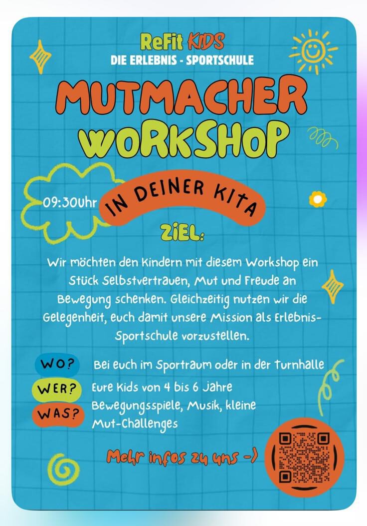 In der vergangenen Woche durften wir in unserem Kindergarten einen ganz besonderen Mutmacher-Workshop durchführen. In Zusammenarbeit mit ReFit Kids – Die Erlebnis-Sportschule aus Borghorst erlebten unsere Kinder ein bewegungsreiches und stärkendes Programm rund um das Thema Selbstvertrauen. 🦁
