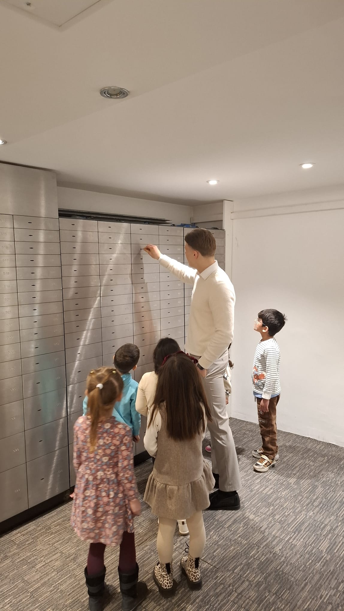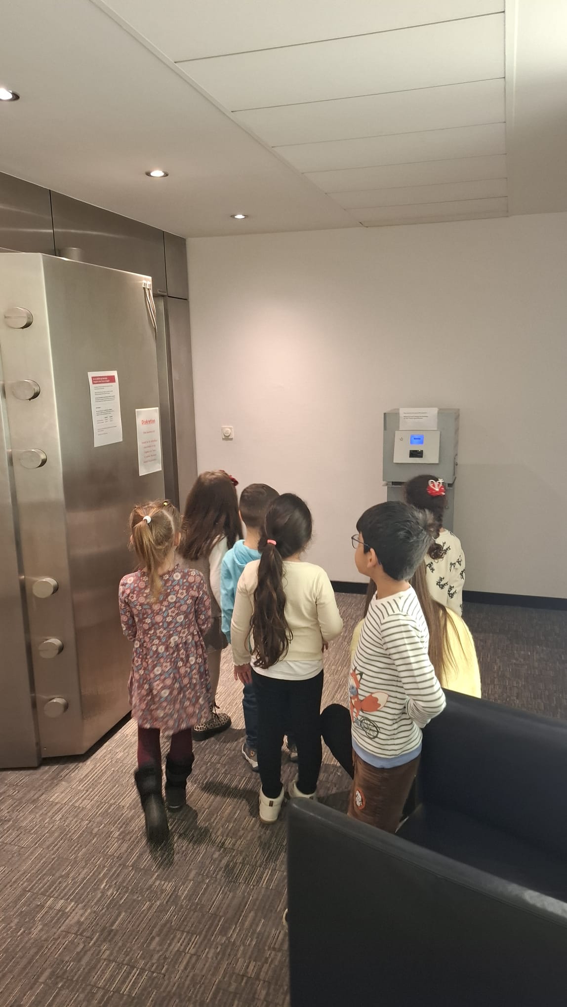 Der absolute Höhepunkt wartete jedoch im Allerheiligsten der Sparkasse – dem Tresorraum. Hier hieß es: Ab auf Schatzsuche! Die Kinder erhielten eine Schließfachnummer und mussten das passende Fach in den langen Reihen der Tresoranlage finden.