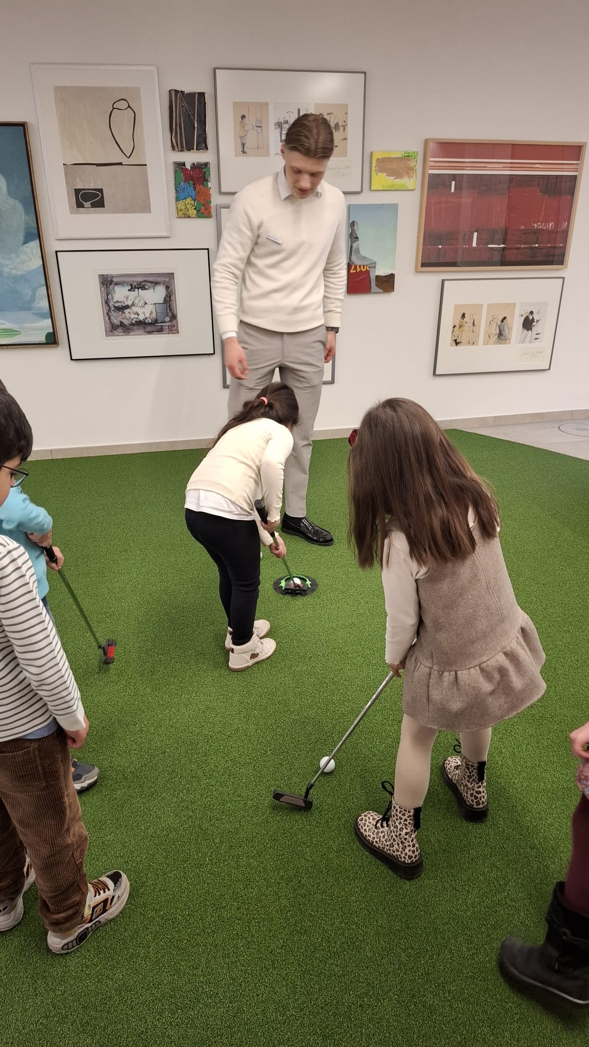Zuerst erfuhren die Kinder spielerisch, wie der Alltag in einer Bank eigentlich aussieht. Bei einer Führung durch die verschiedenen Räume der Filiale gab es viel zu entdecken – und sogar eine sportliche Einlage: Die Kinder durften sich beim Golfen ausprobieren, was für große Begeisterung sorgte.