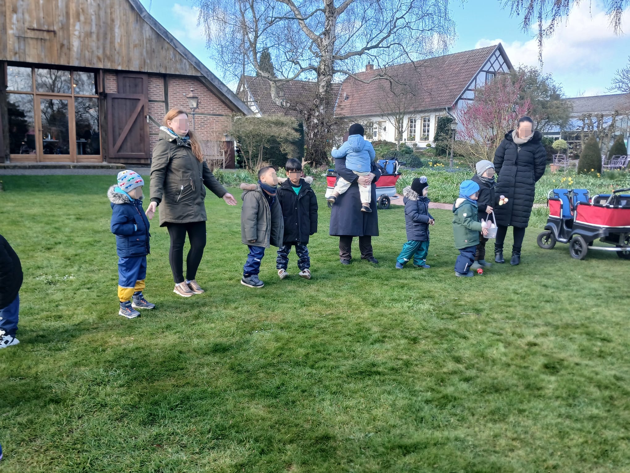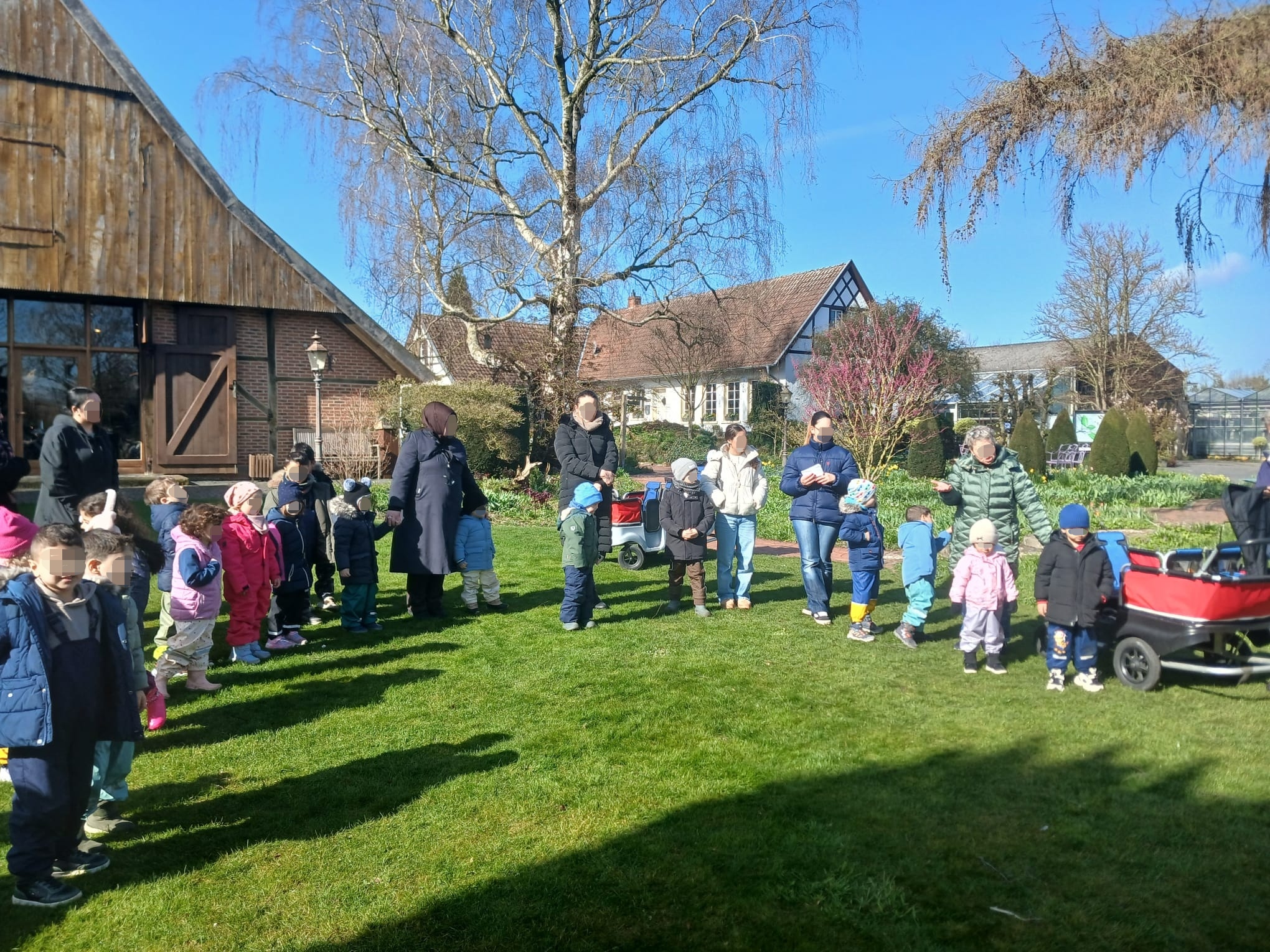 Was für ein aufregender Vormittag! Kurz vor den Osterferien hieß es für unsere Kinder: Rucksäcke auf und los geht’s! Gemeinsam mit unseren Erzieherinnen und einigen fleißigen Eltern haben wir uns auf den Weg in den wunderschönen Kreislehrgarten gemacht.