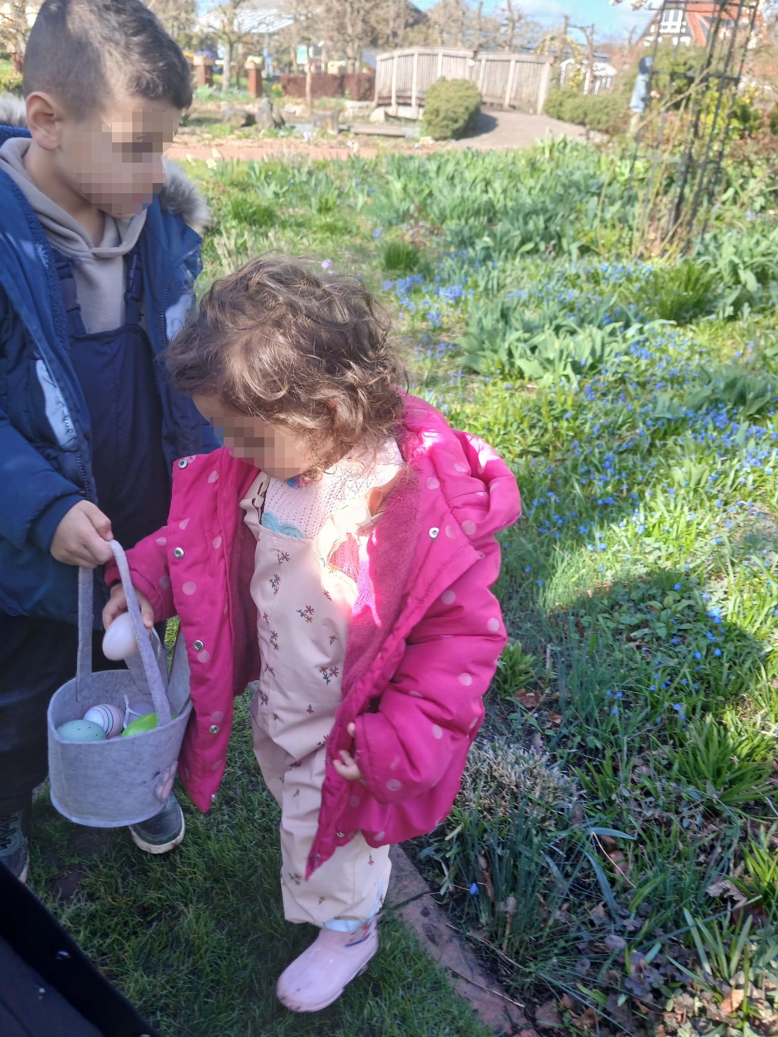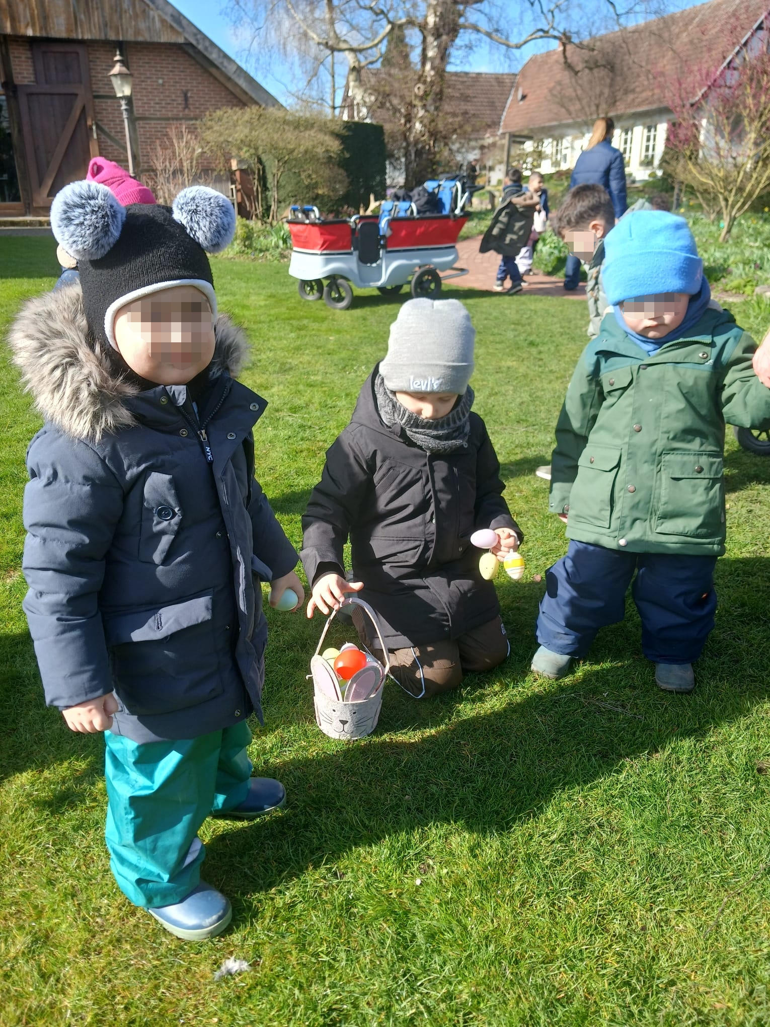 Dort angekommen, gab es kein Halten mehr: Der Osterhase war wohl schon heimlich da! Mit leuchtenden Augen und ganz viel Eifer suchten die Kinder zwischen Sträuchern und Bäumen nach bunten Überraschungen.